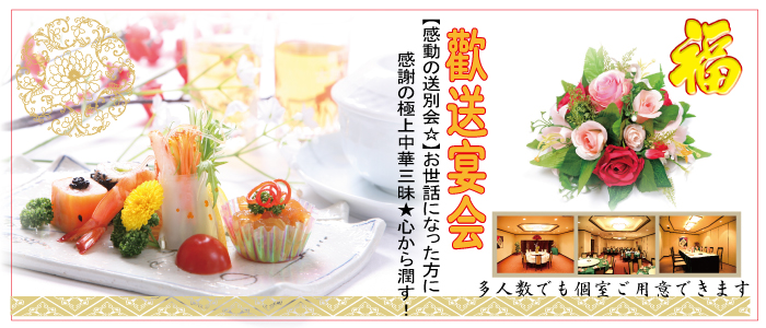 歓送迎会で一番ご予約が多い人気のコースは、6,000円以上のコースとなります。盤古殿では、お客様のご要望に応じた各種宴会コースメニューをご用意しております。各宴会メニューの詳細については、以下よりご確認いただけます。
